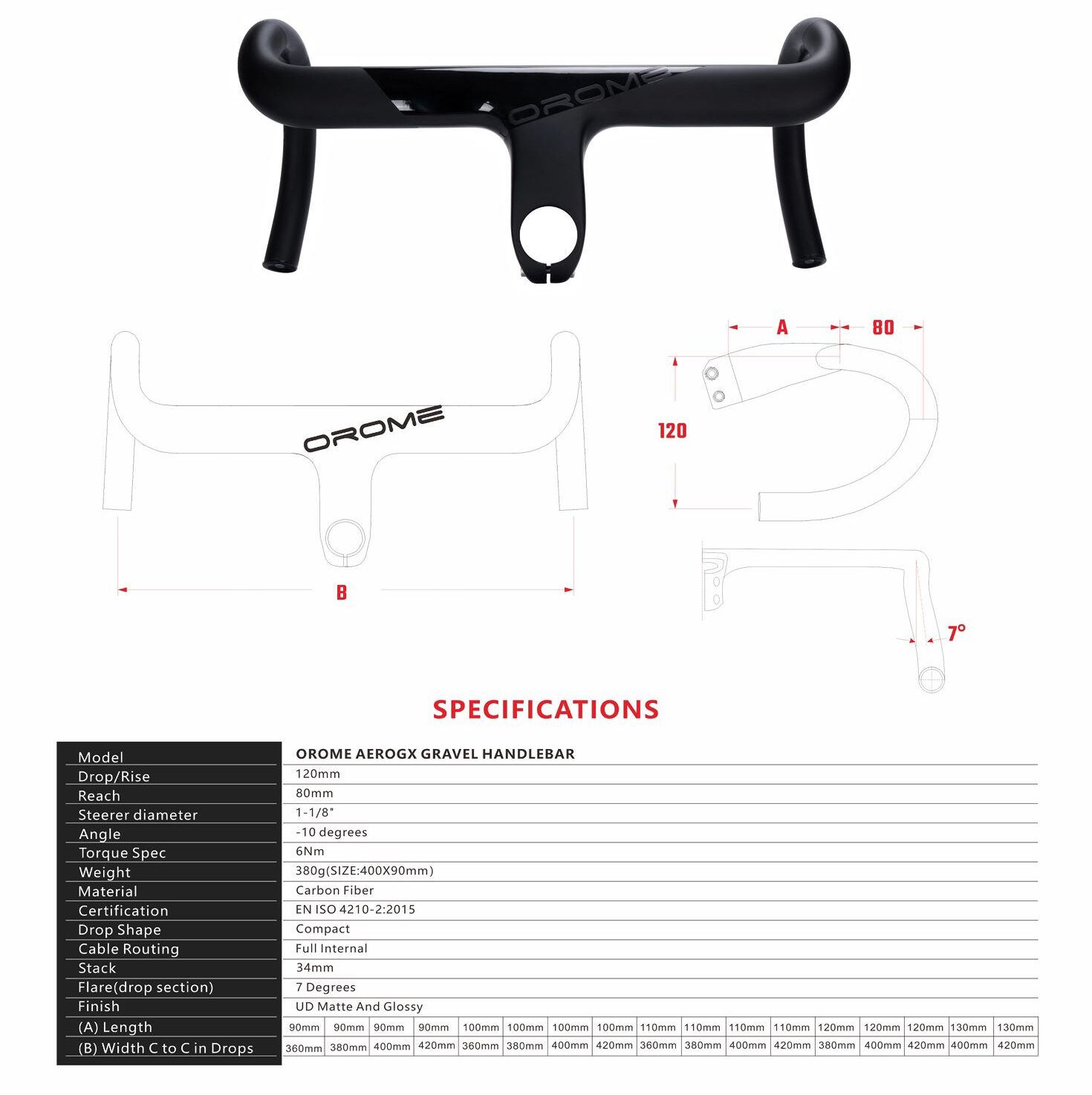 | Mori AEROX Handlebar Width/Stem | 360/90, 360/100, 360/110, 360/120, 360/130, 380/90, 380/100, 380/110, 380/120, 380/130, 400/90, 400/100, 400/110, 400/120, 400/130, 420/90, 420/100, 420/110, 420/120, 420/130 |